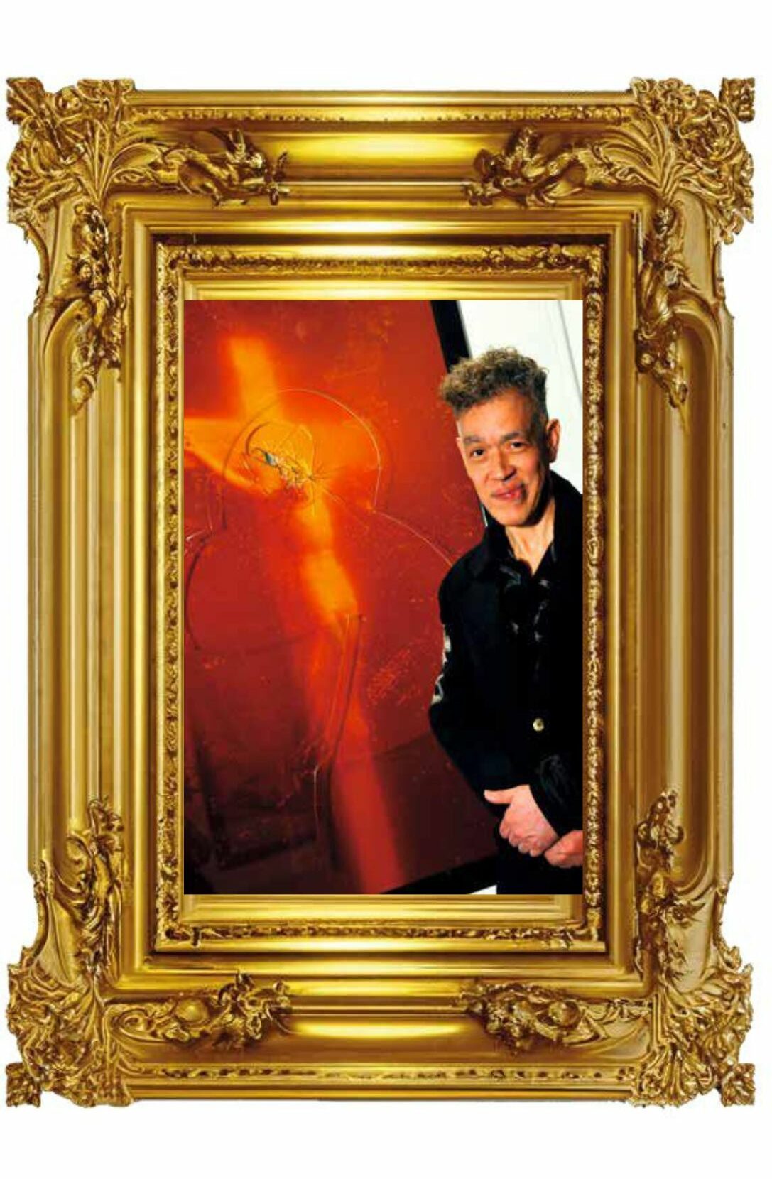 Avignon, 5 septembre 2011. L’artiste américain, à la Fondation Lambert, devant son œuvre vandalisée.